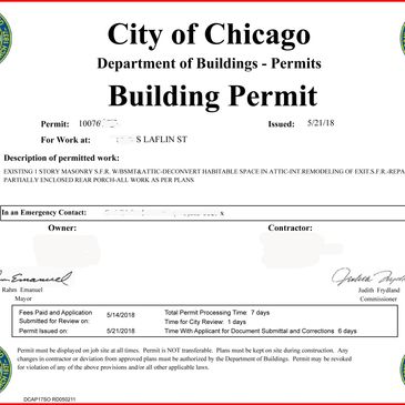Usamos los mejores expedidores de la Cuidad de Chicago y os suburbios circundantes. Emitimos permisos de construcción en tan solo dos semanas.
